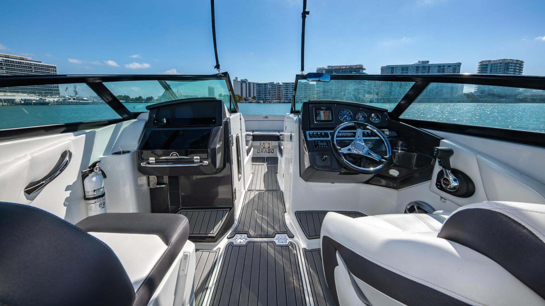 Another beautiful 27ft Monterey ready to host your family & friends for a fun day on the water. Equipped with a 300hp outboard engine, this versatile boat offers performance and comfort. All seating options (bow, cockpit, and stern) include handrails for extra passenger safety. The Monterey´s bimini provides the captain and guests with shade, perfect for full day charters. She includes bluetooth and multiple speakers so guests can enjoy some tunes during their cruise.