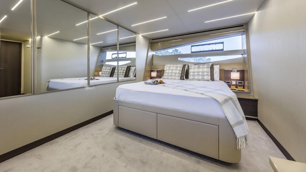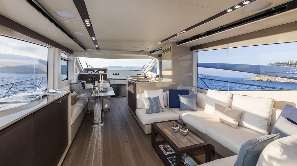 Featuring modern styling and multiple spaces for guests, the 65ft Numarine charter yacht is simply divine! On the exterior she features flybridge, multiple bow seating, rear deck entertaining area, and ample swim platform. The flybridge and bow are perfect spots for guests who want some sun. Your family & friends can enjoy panoramic views of Miami from the flybridge area. The rear deck entertaining area includes bench seating, table, and stern sunpad. Without doubt, this is the perfect place to have a meal as you take in views of Miami.